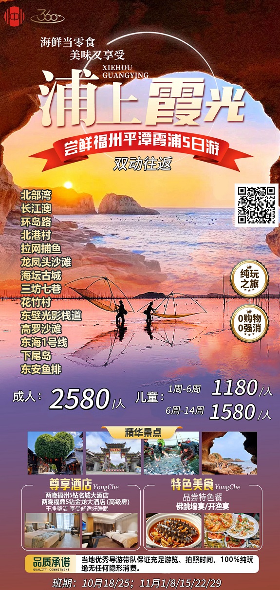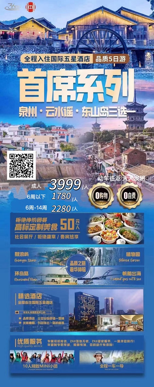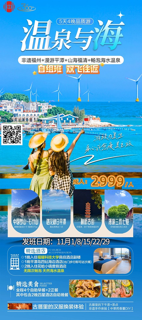 线路名称:11月【福建:福州 平潭岛 白水洋 霞浦 太姥山 泉州 东山岛】线路及报价