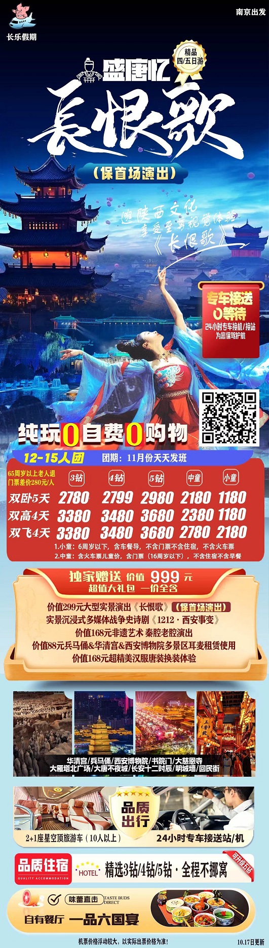 【长安夜太美:西安15人小团4-5日游 含三场演出】.行程