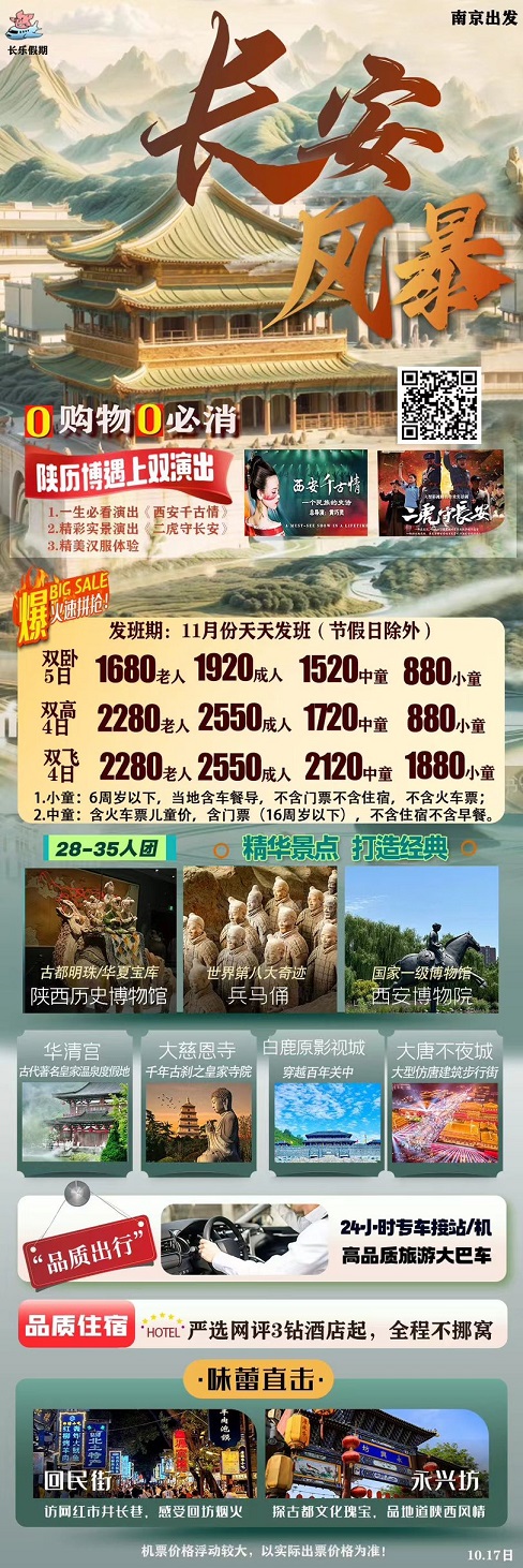 【长安风暴:西安4-5日游 陕西历史博物馆+双演出】.行程