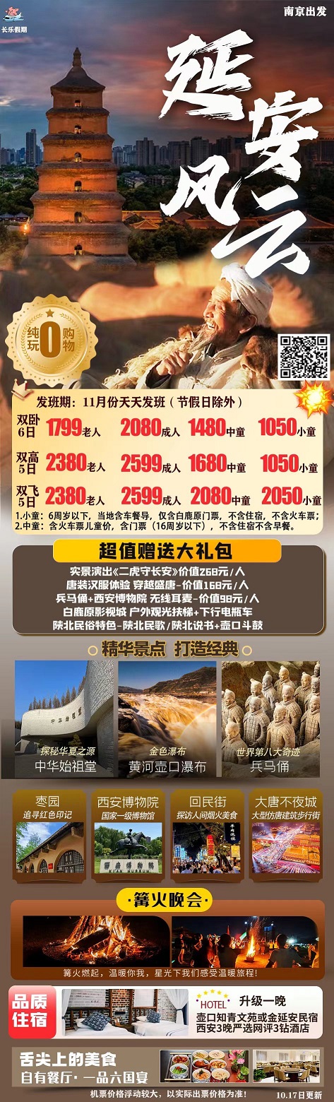 【梦回延安:西安兵马俑/华清池/延安壶口/市区大雁塔5-6日游】.行程