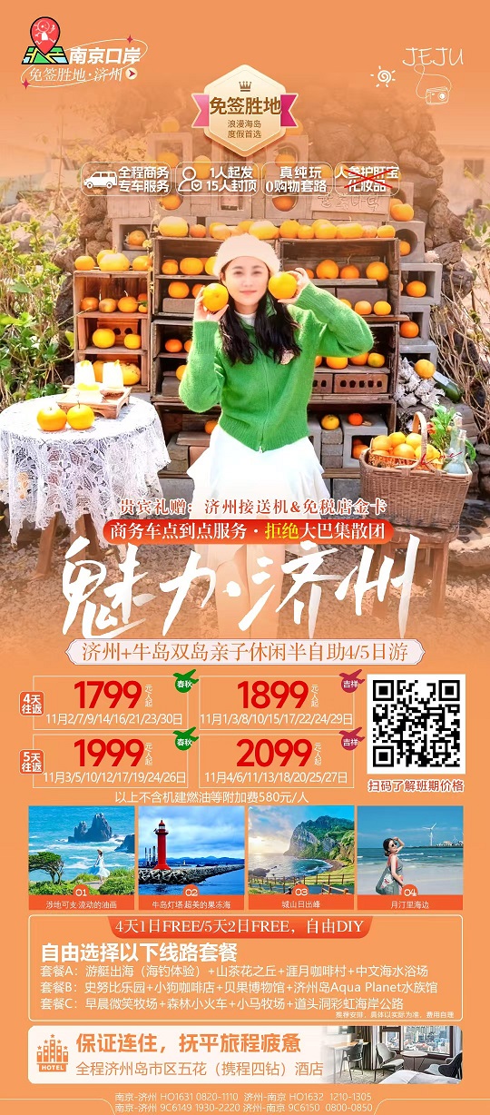 【魅力济州:韩国济州岛4-+牛岛双岛休闲半自助4-5日游 1-2天自由活动】.行程