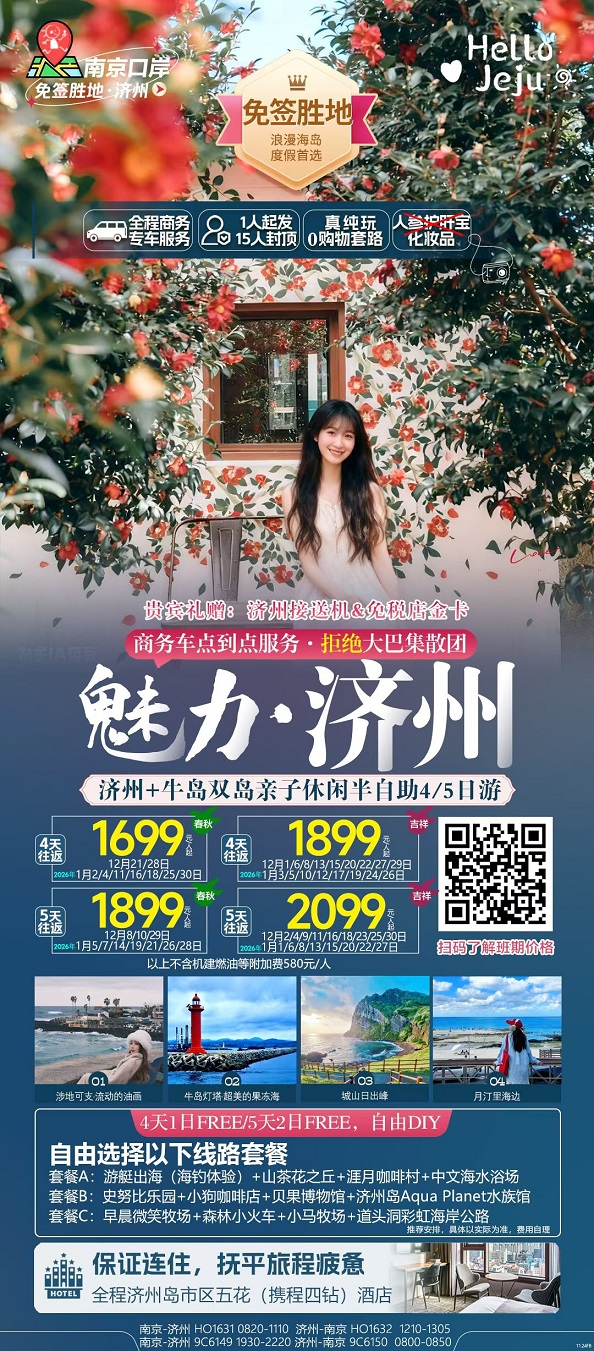 【星耀济州:韩国济州+牛岛浪漫休闲纯玩4日游 15人以内全跟团】.行程
