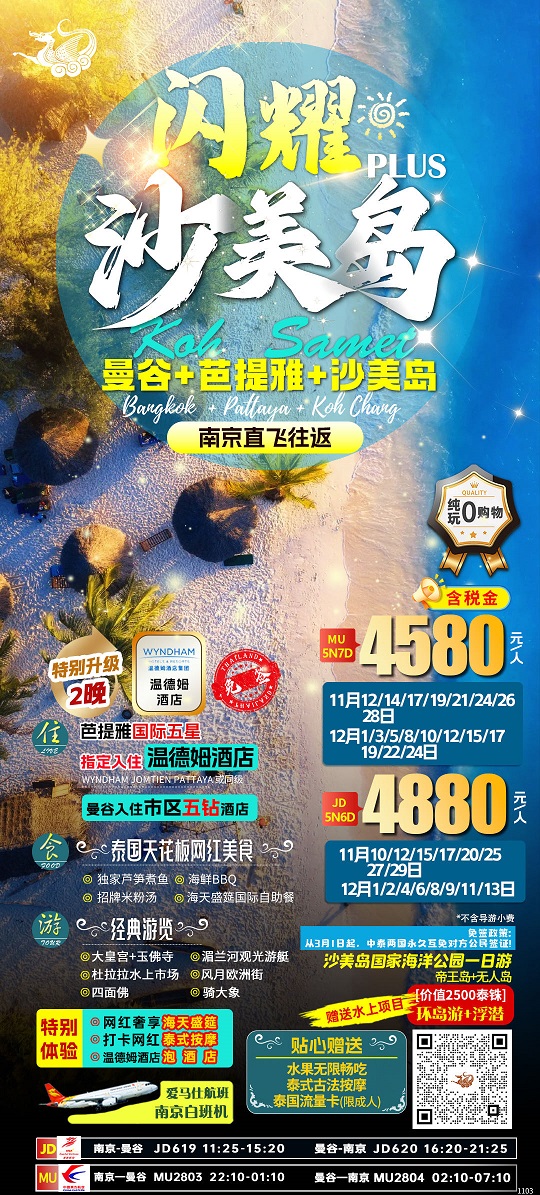 【沙美岛国家海洋公园+环岛游+岛上水果餐+浮潜】(保证 4 个小时游玩)环岛游,独家赠送价值 2500 泰铢的水上项目-环岛游,抵 达沙美岛后,你可换上最靓丽的泳装,这里也有各种水上活动,一次满足你对海岛的各种憧憬!