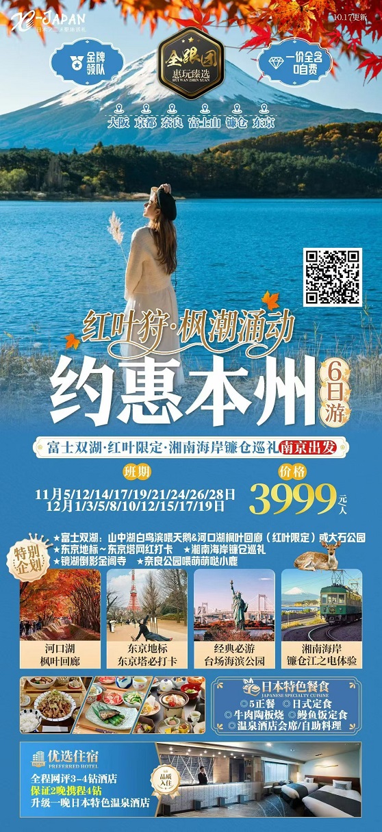 【约惠本州:日本富士双湖•红叶限定6日游】.行程