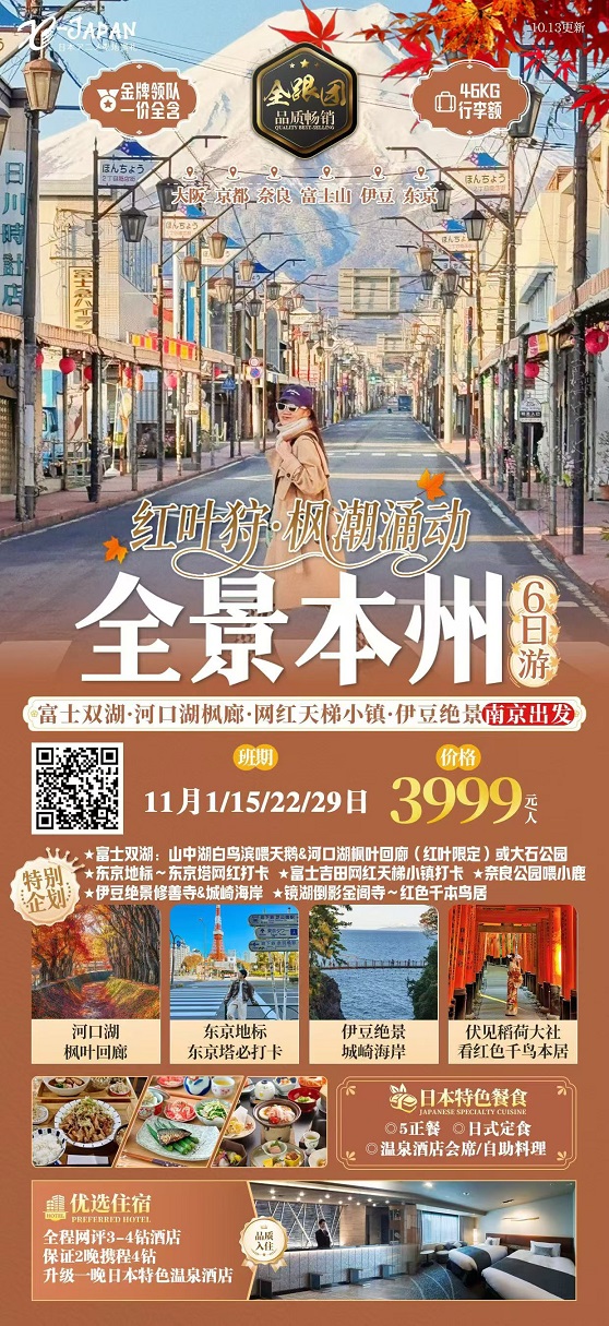 *如天气不好五合目封山 ,将更改为忍野八海代替, 敬请理解! 枫叶季 ,行程景点将根据季节时间不同进行调整 ,敬请知晓 ~