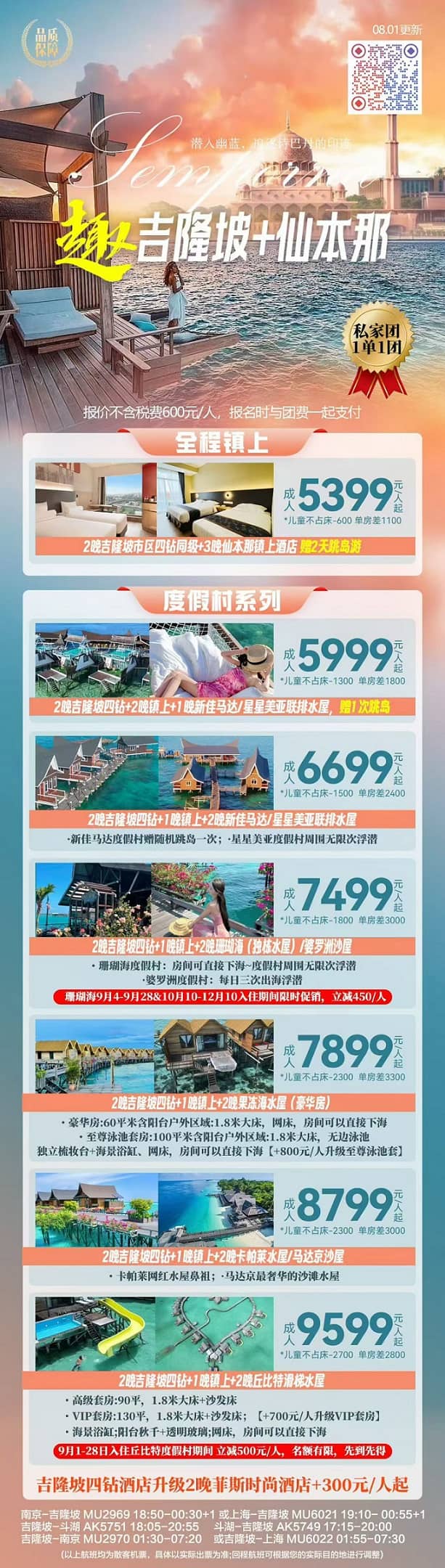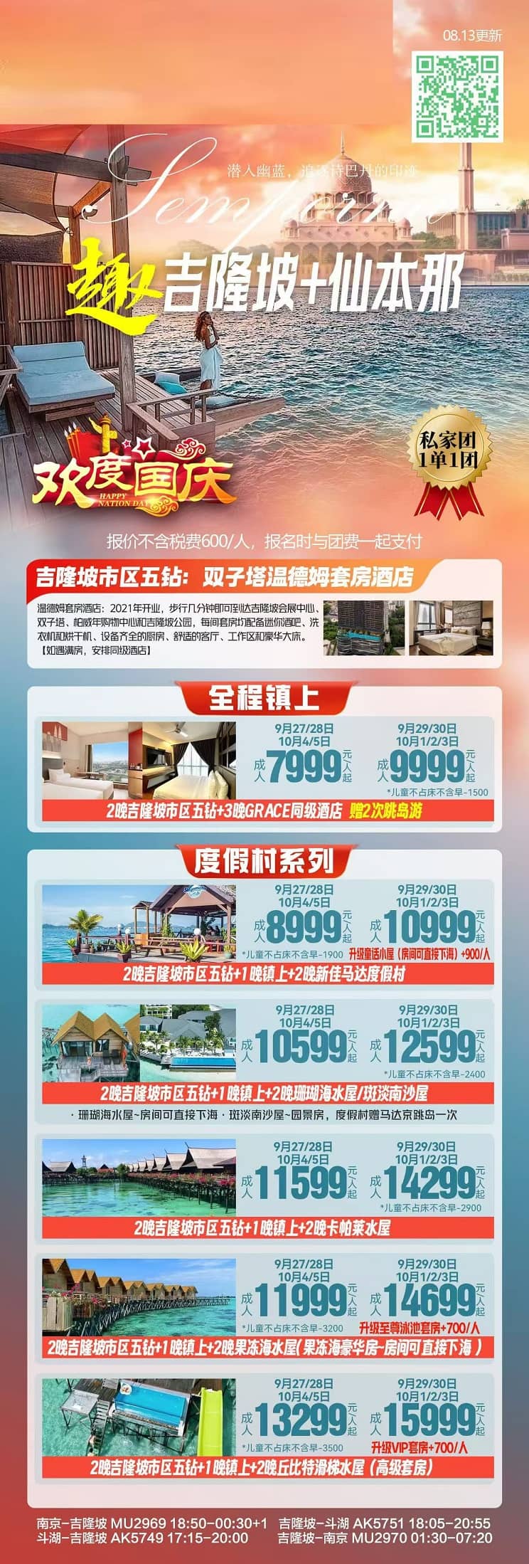 线路名称:9-12月【仙本那-南京直飞】线路报价