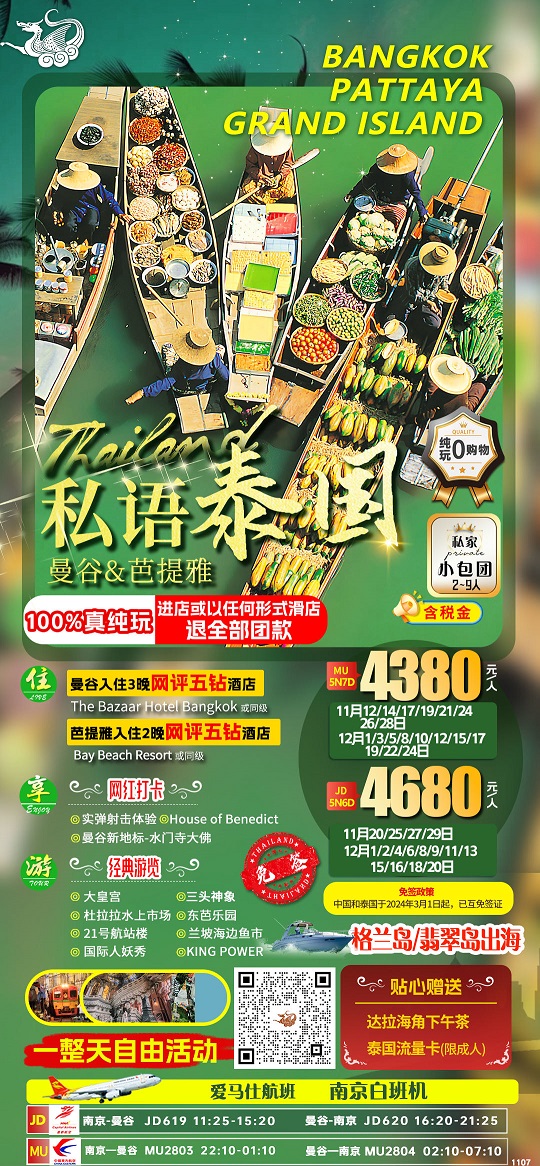 【私语泰国:泰国曼谷芭提雅6-7日纯玩 2-9人小包团 1天自由活动】.行程