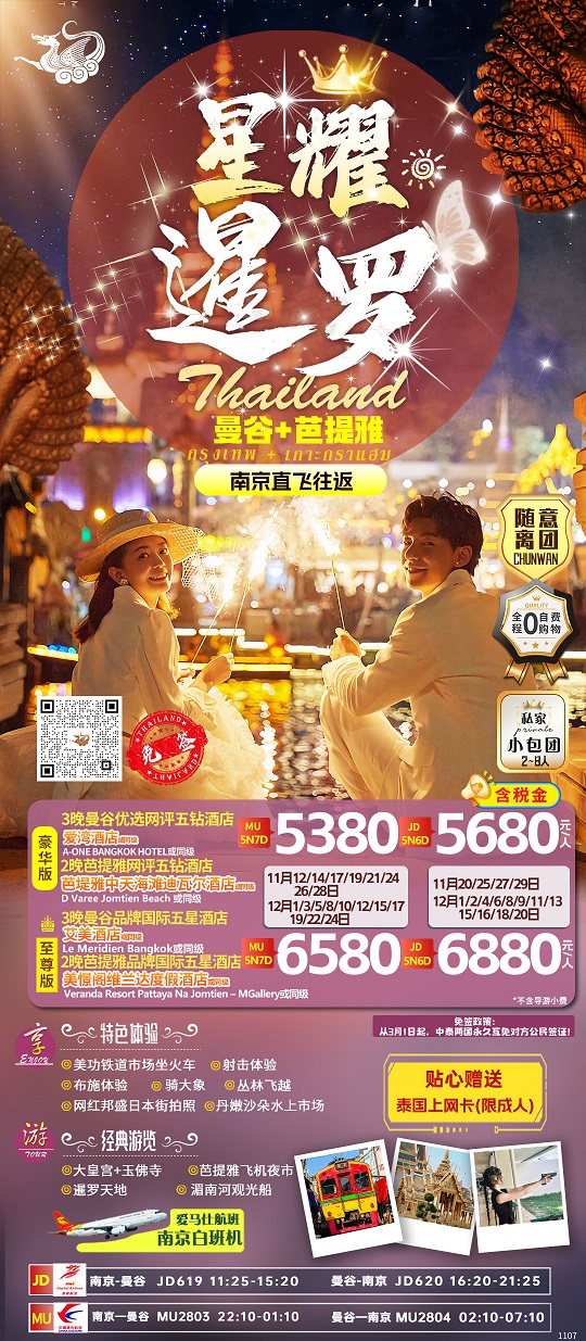 【泰美丽尊享:泰国曼谷芭提雅6-7日游 全程0自费 仅2站购物】.行程