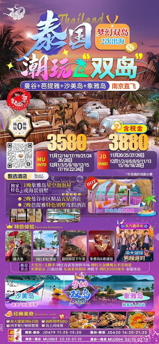 【潮玩双岛:泰国曼谷芭提雅+沙美岛+象雅岛6-7日游 纯玩0购物】.行程