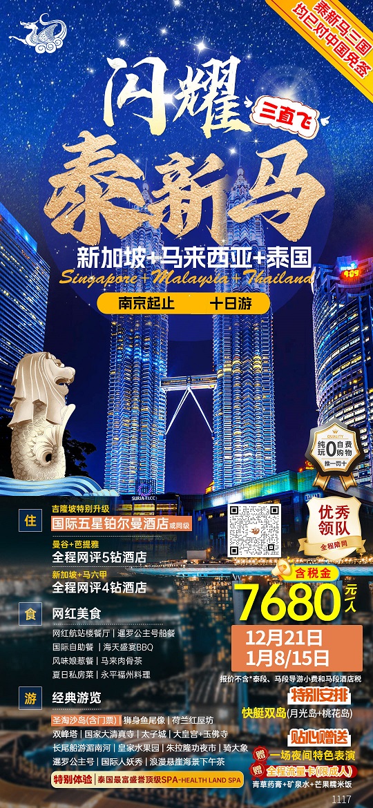 【闪耀泰新马:新加坡+马来西亚+泰国10日游 0购物0自费】.行程