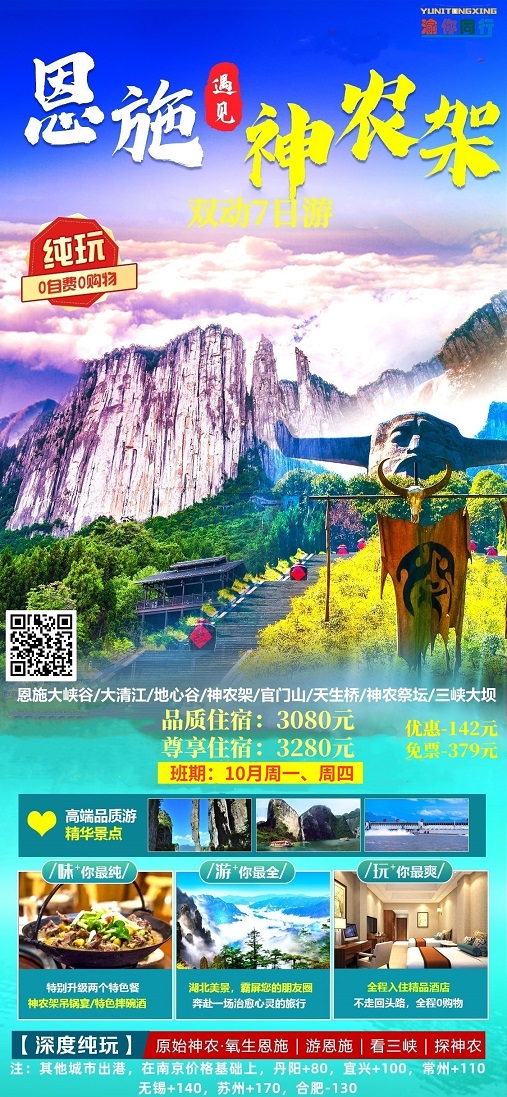 10月【湖北:恩施 神龙架 宜昌 武当山 武汉】线路及报价