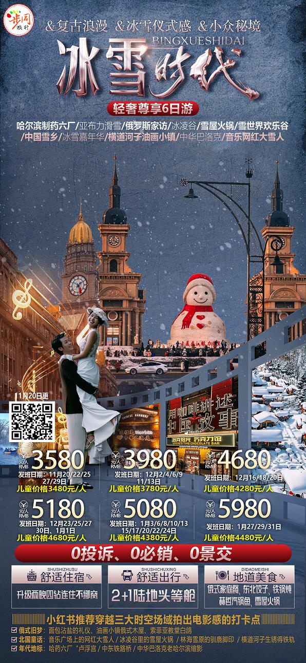 ❆ 地标美食:市区内社会餐厅, 俄式家庭餐、铁锅炖、八大碗、冷水鱼宴、饺子宴、雪屋火锅 ❆ 尊享升级:热门 IP、网红景点全覆盖, 炫酷新玩法, 霸占你的朋友圈!