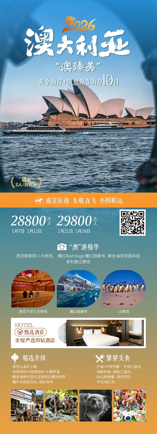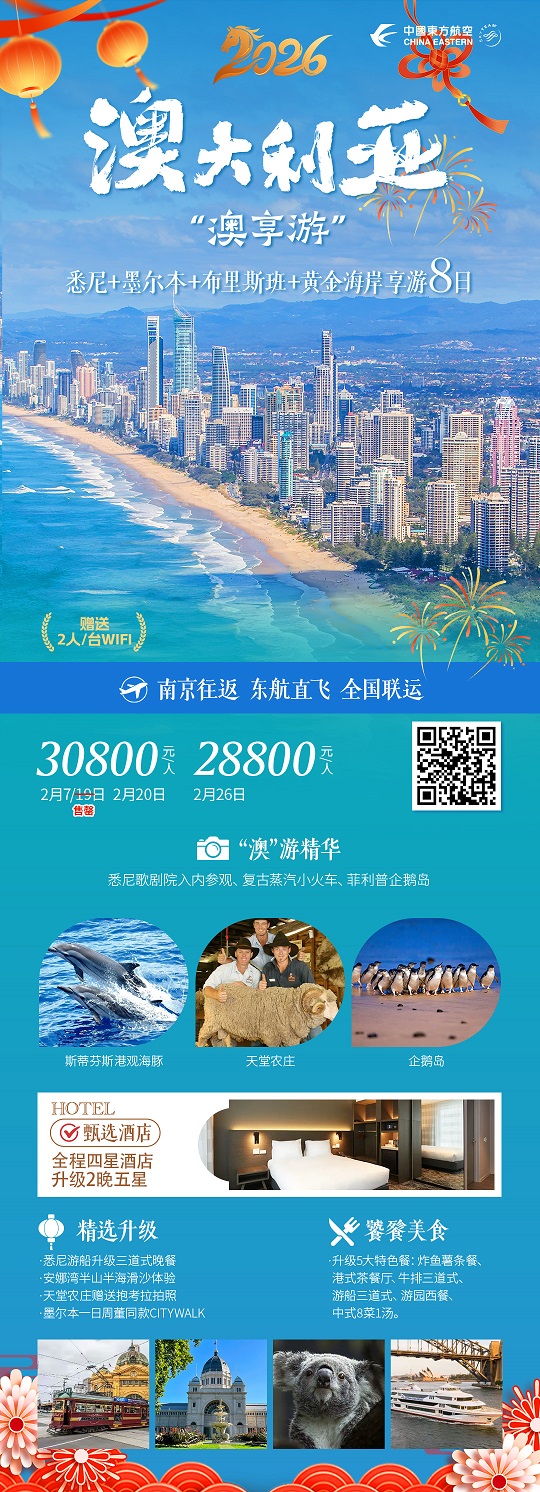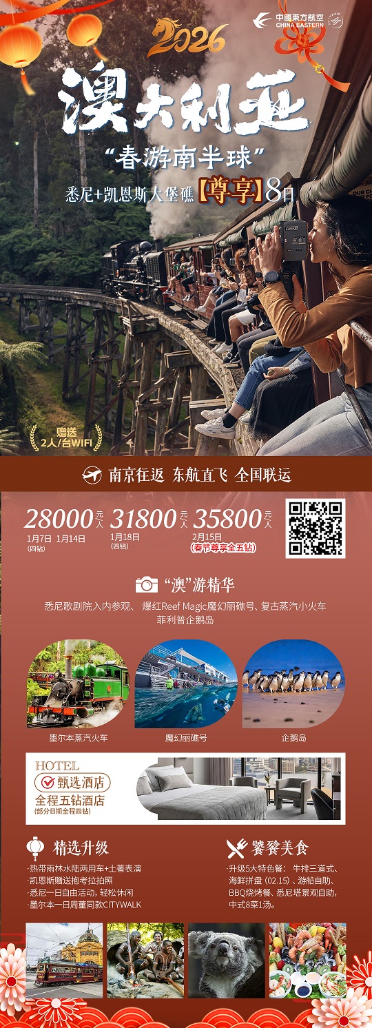 线路名称:1-2月含春节【澳大利亚-南京往返】线路报价