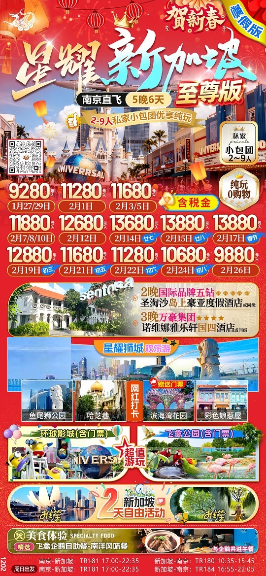 2月春节【新加坡 马来西亚】1月27日-3月3日报价