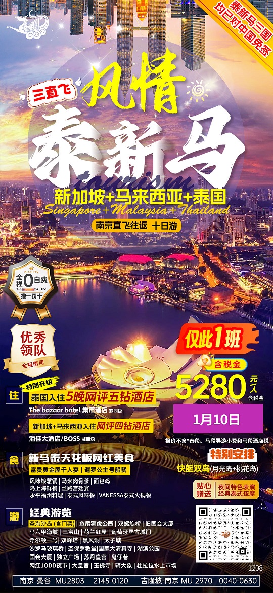 线路名称:12月-2月春节【泰新马连线:泰国 新加坡 马来西亚】线路及报价